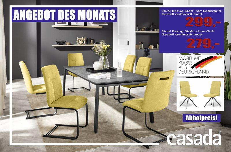 Stuhl Cando wahlweise ohne oder mit Ledergriff am Rücken diesen Monat in Stoff mit Metallgestell ab nur 279,- ohne bzw. ab 299,- mit Ledergriff am Rücken