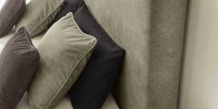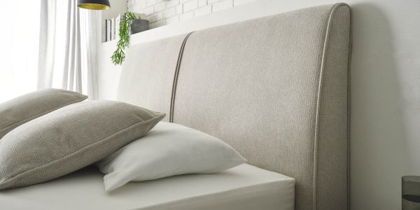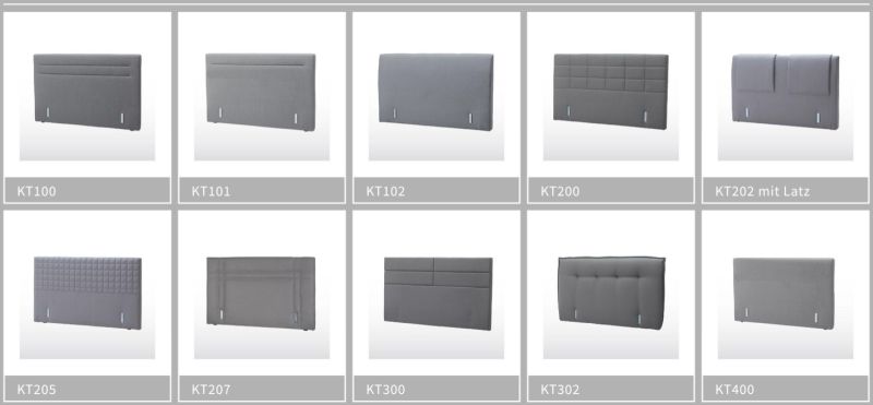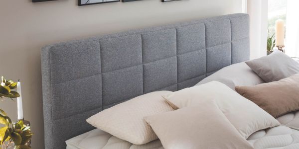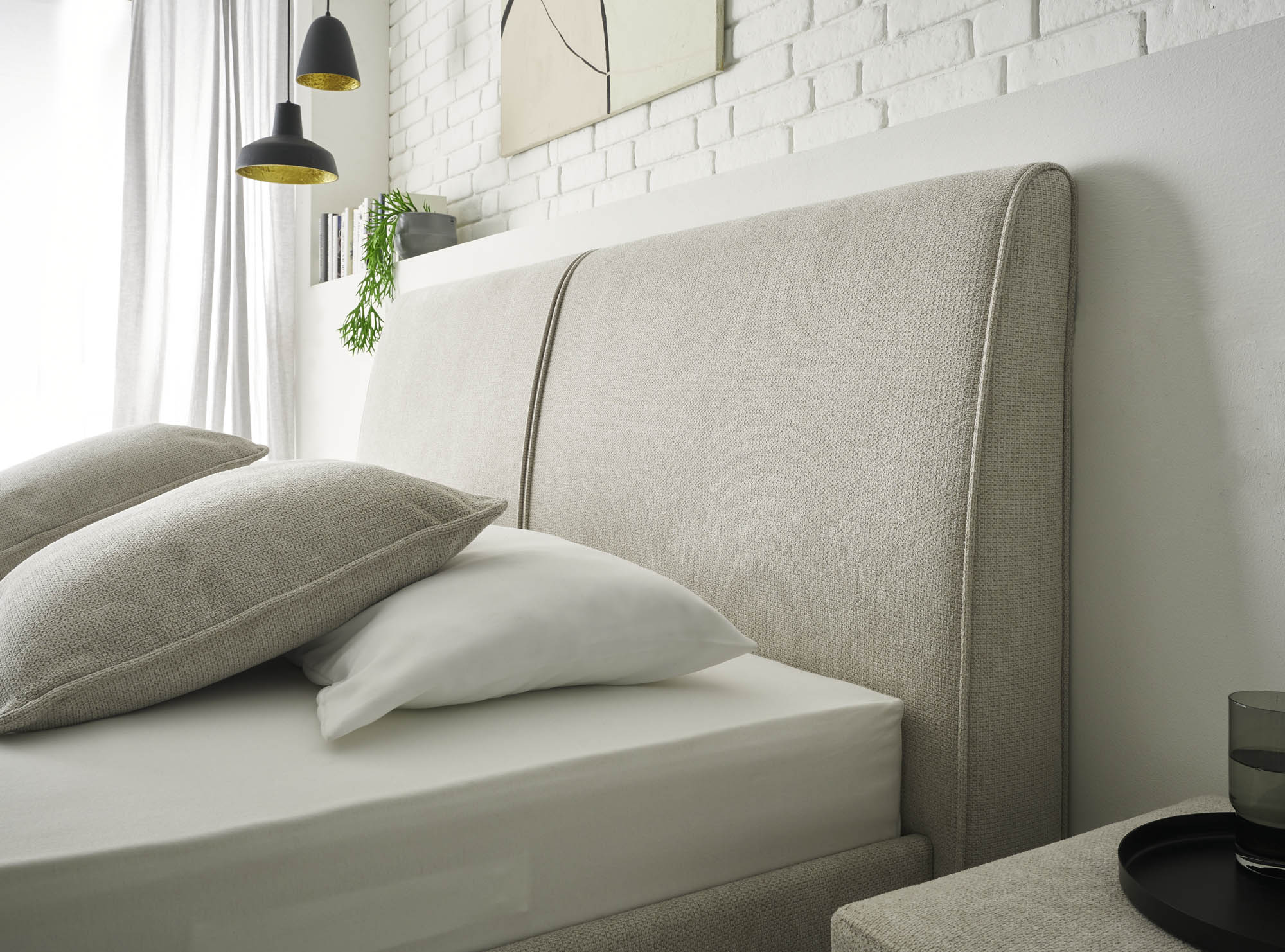 Der Rücken des Kopfteils ist mit einem Spannstoff bezogen, kann aber nach Wunsch auch im Bezugsstoff bestellt werden. Eine Bestellung ohne Kopfteil ist ebenso möglich wie eine Breiten-und Höhenkürzung.