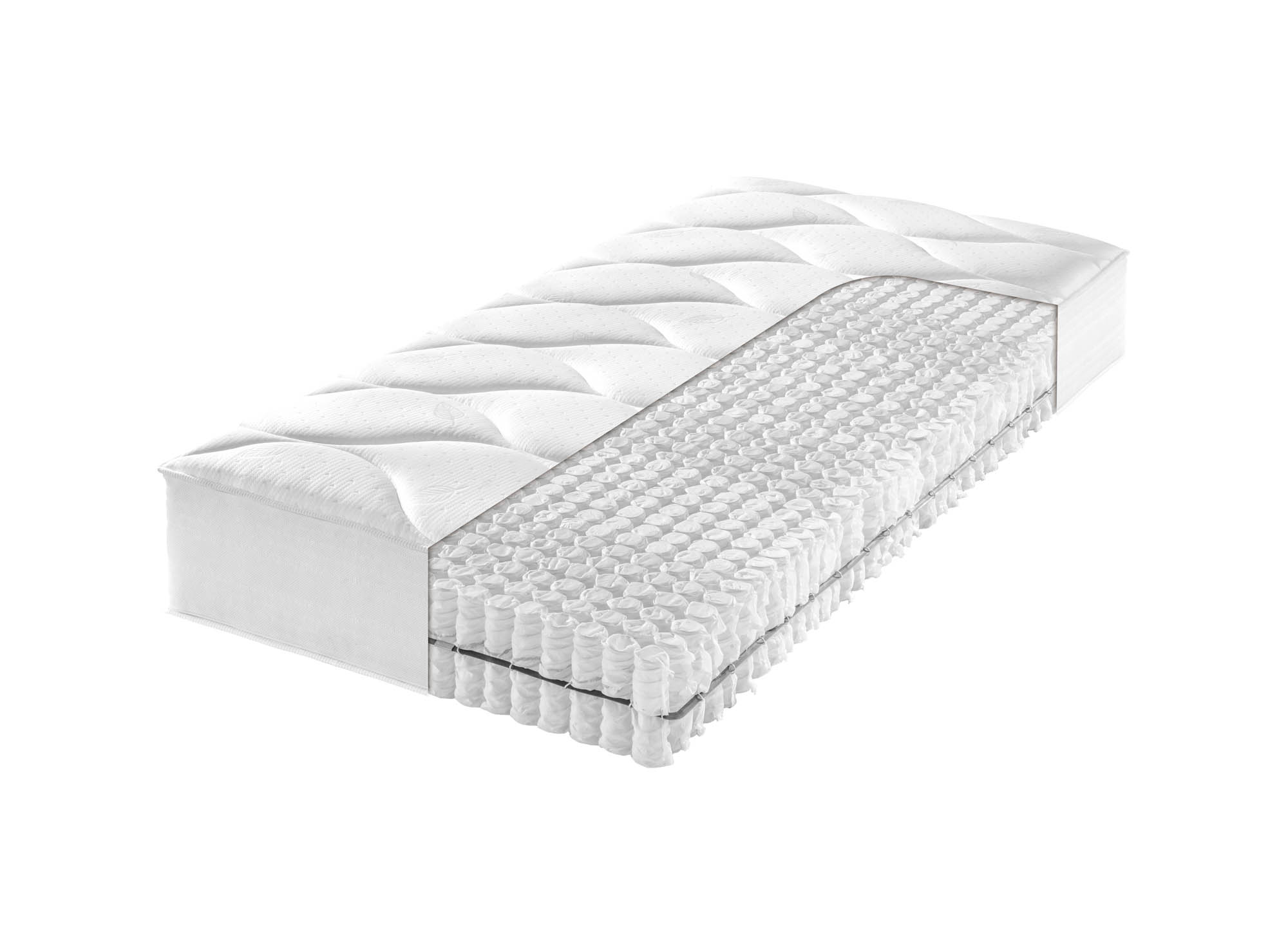 - Kern: 7-Zonen-Tonnentaschenfederkern (448 Federn in der Größe 100/200 cm), beidseitig flexibler Polsterträger