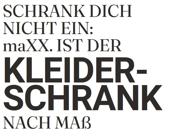 Acht verschiedene maXX.-Module ermöglichen die exakte Anpassung an Ihre ganz persönlichen Gestaltungswünsche. Standard- oder Individualschrank? Begehbar oder nicht? Dreh-, Falt- oder Schwebetür? Mit maXX.-Bett, Kommode und mit Zubehör? Lack oder Furnier? Sie sehen: Mehr als maXX. brauchen Sie nicht – denn maXX. kann mehr als Sie brauchen.