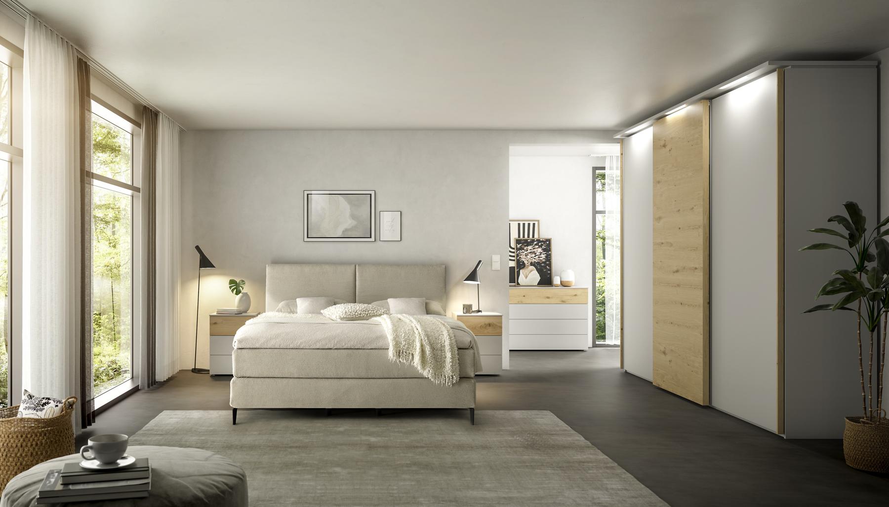 Kein Raum ist wie der andere. Für Schlafzimmer gilt das erst recht. Hier jedoch sind kluge Gestaltungslösungen gefragt, die alle Besonderheiten und Erfordernisse abdecken: Raummaße, Dachschrägen und Nischen. Schrank, Kommode und Bett. Tür-, Lack- und Furniervarianten. Ihre Wünsche, die Wünsche Ihres Partners oder Ihrer Partnerin. Denn auf die kommt es an – mehr als auf alles andere.