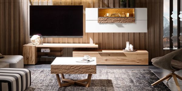 Es erinnert an alte Stadl’n und versetzt das Ambiente in einen alpinen Kontext: Spannend ist etwa der Kontrast zwischen der puristischen Formensprache und dem besonderen Material. Jede Maserung ist individuell gewachsen, zudem bringt das Altholz durch unterschiedliche Einsatzbereiche seine eigene Geschichte mit. Optional lässt es sich mit Merino-Schurwolle oder Schwarzglas kombinieren. Demnach bietet Voglauer eine zeitgemäße Möbelgeneration, die Naturarchaik und Ursprünglichkeit unterstreicht – aus Freude am Original.