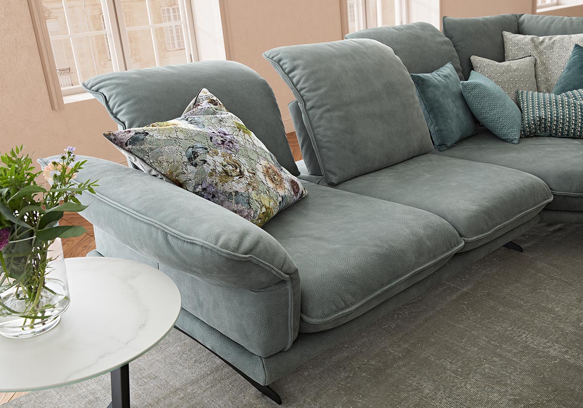 Einfach sitzen bleiben möchte man auf diesem ausladend bequemen Sofa- und Anreihprogramm. Reichlich Platz, auch für zwei, schenkt der extrabreite Longchair. Mit dem motorischen Sitzauszug, der bequemen Kopfstützenverstellung und der Wahl aus zwei Fuß-/Sitzhöhen gibt es weitere einladende Entspannungsvarianten.
